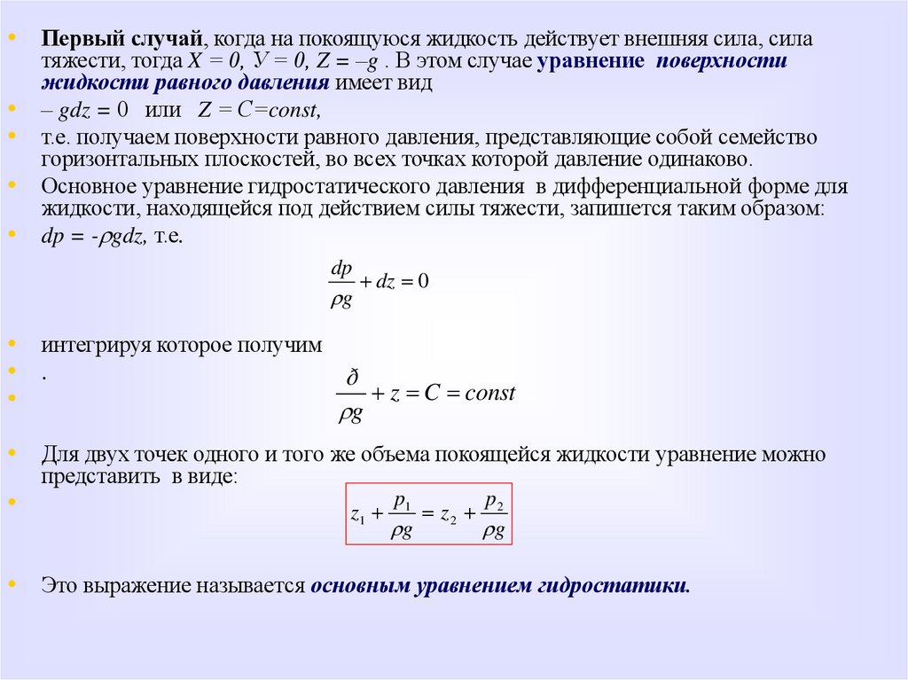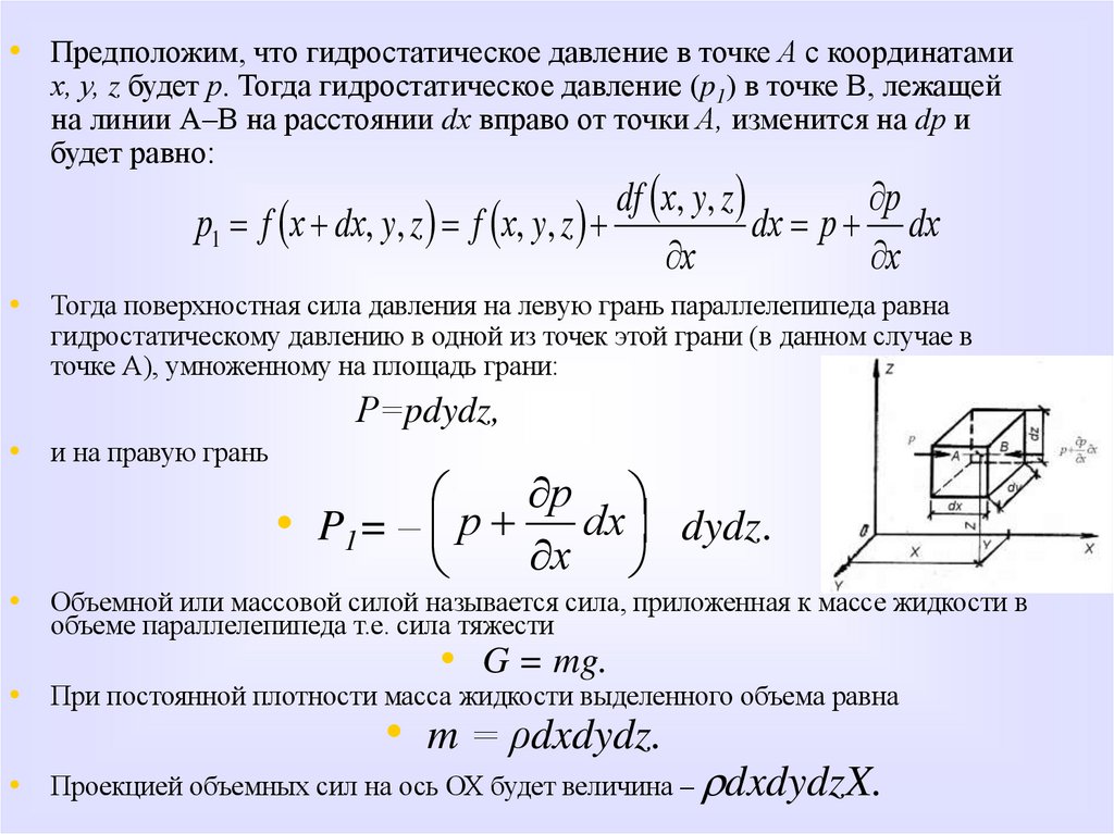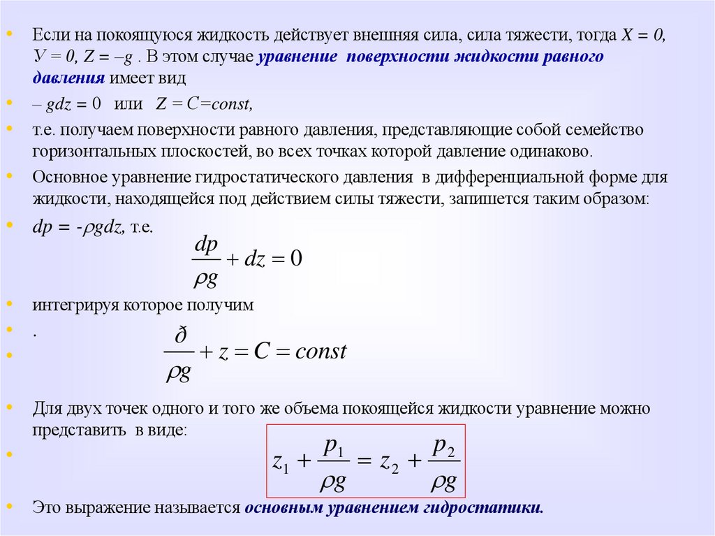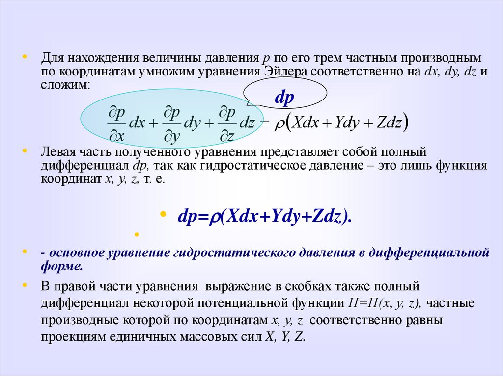 гидростатического давления в точке получаются путем интегрирования этих уравнений. Уяснить