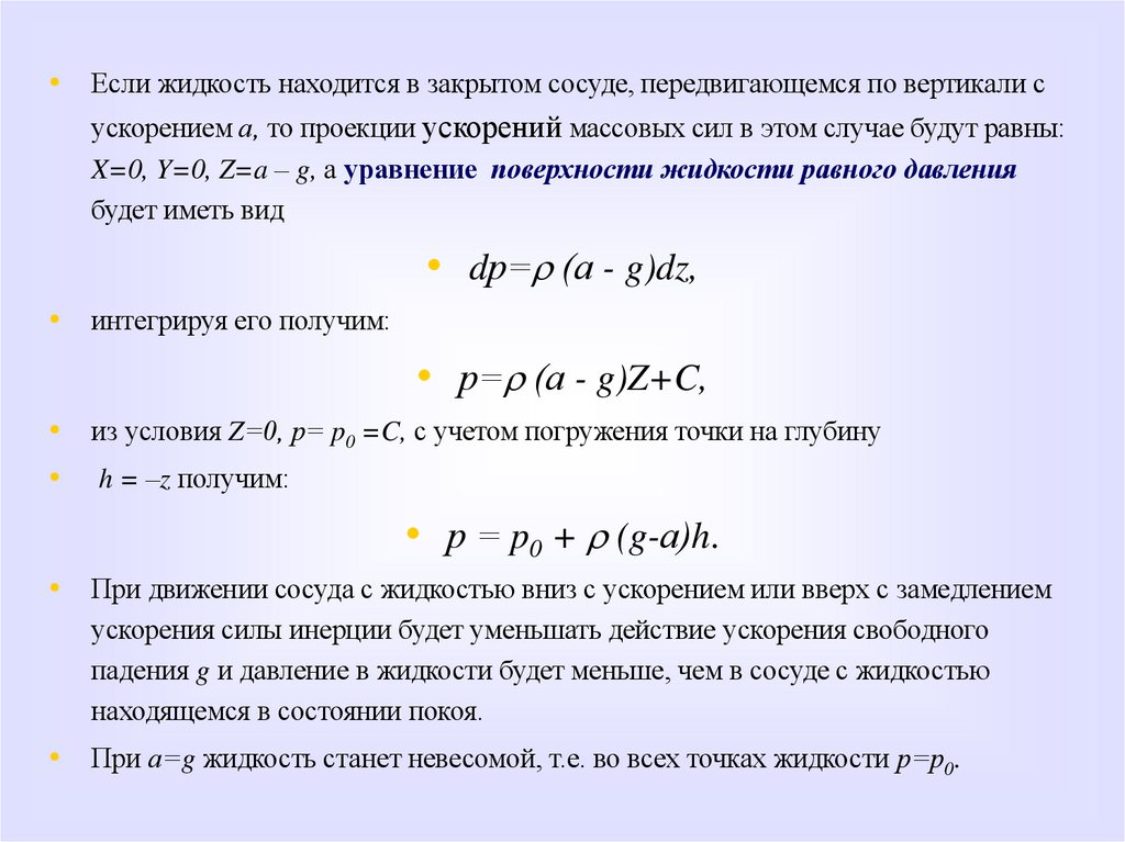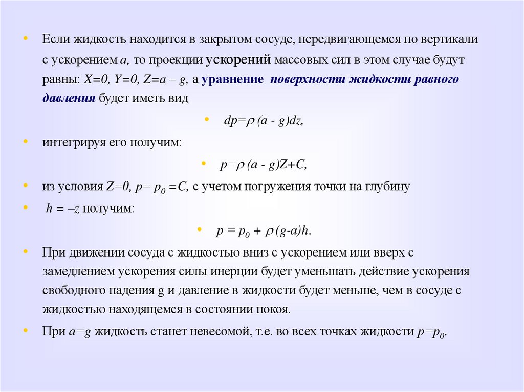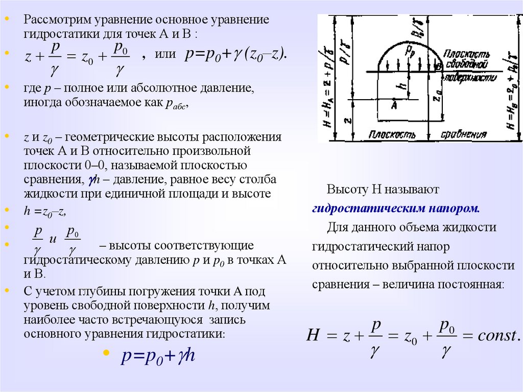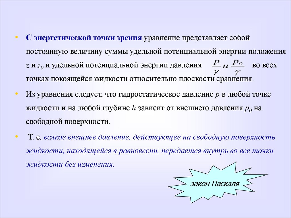 гидростатического давления в точке получаются путем интегрирования этих уравнений. Уяснить