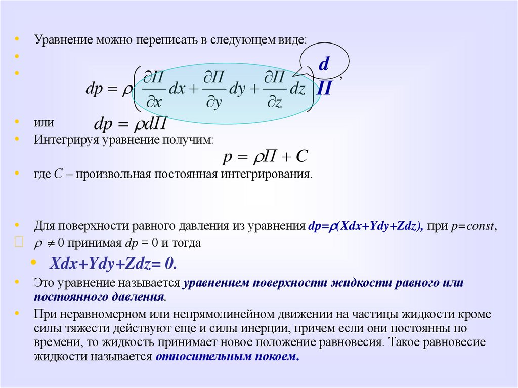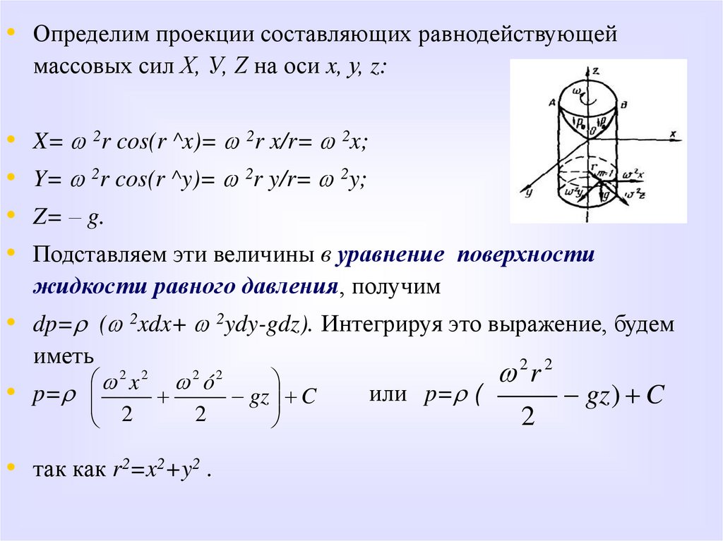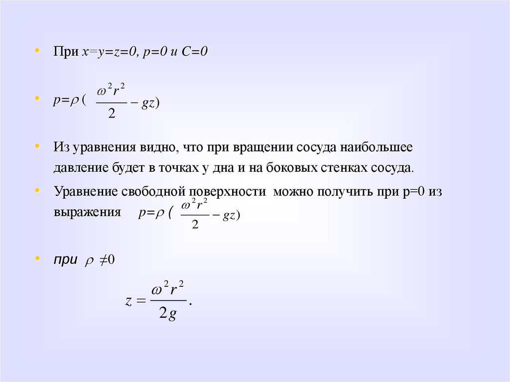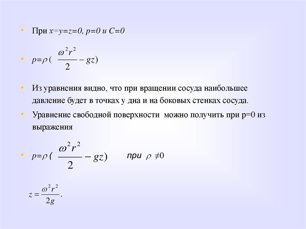 • dp=r ( 2xdx+ 2ydy-gdz). Интегрируя это выражение, будем