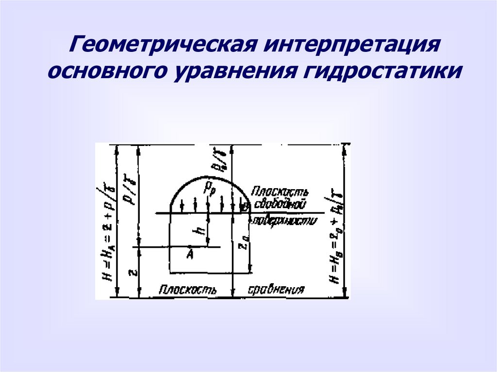 некоторого объема неподвижной жидкости относительно выбранной плоскости сравнения. Рассмотреть