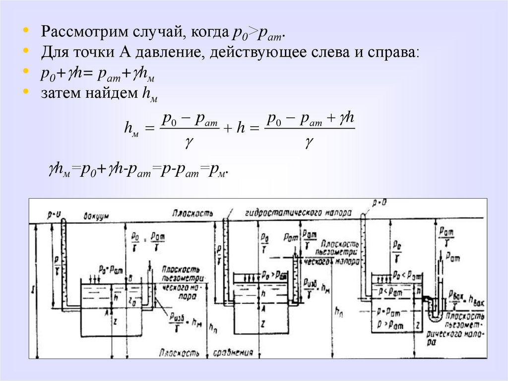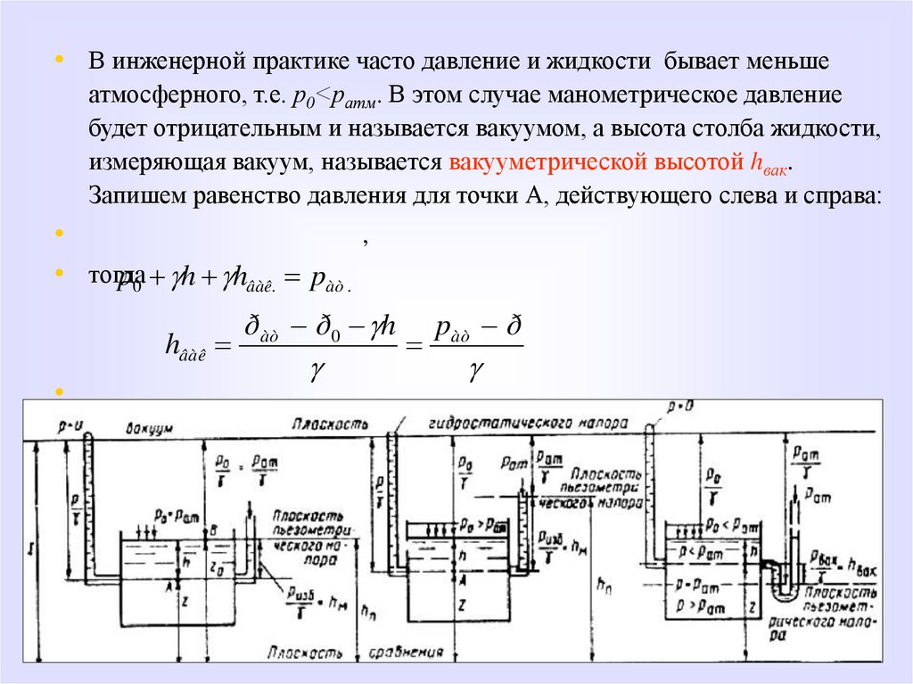 и вакуума. Рассмотреть понятия пьезометрической и вакуумметрической высот, гидростатического