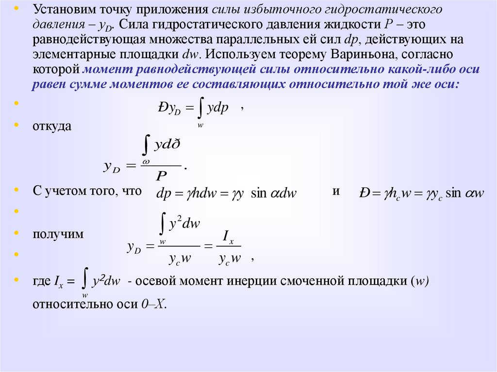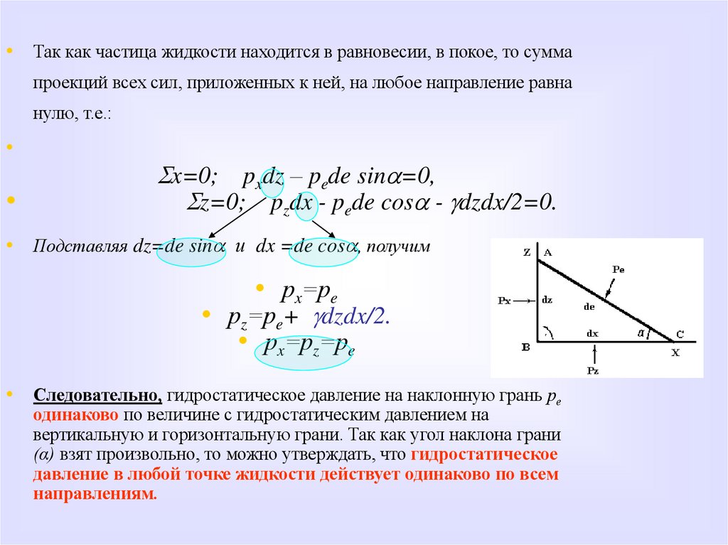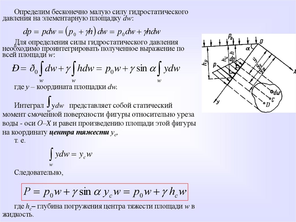 • Следовательно, сила гидростатического