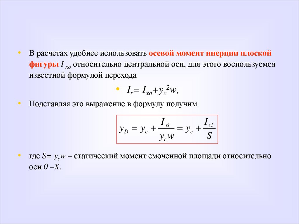 7. Написать и пояснить формулу для определения центра давления, действующего на плоскую