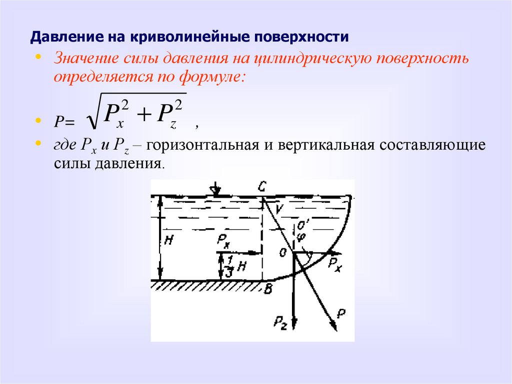 8. Привести формулы для определения равнодействующей силы давления на цилиндрическую