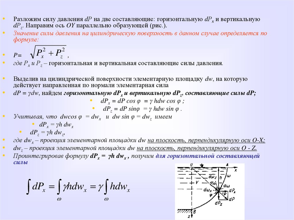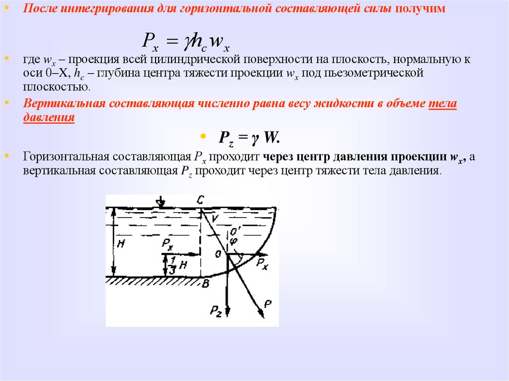 Проинтегрировав формулу dPx = γh dwx , получим для горизонтальной составляющей