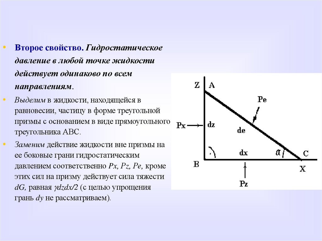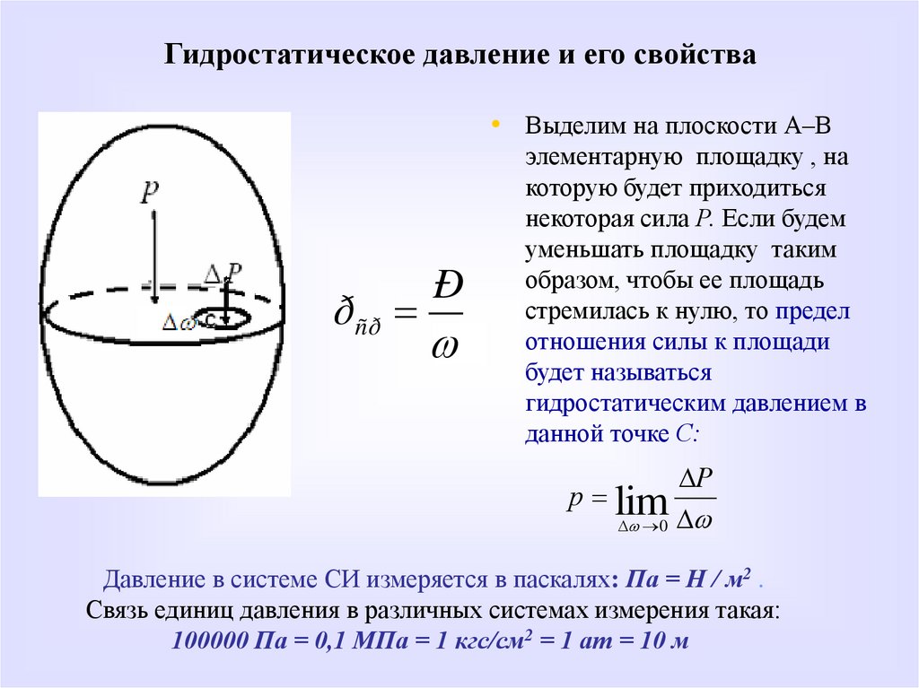 Гидростатическое давление и его свойства• Выделим на плоскости А–В