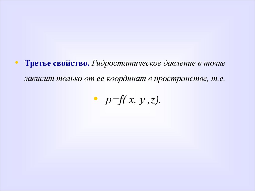 • Гидростатическое давление характеризуется тремя основнымисвойствами.