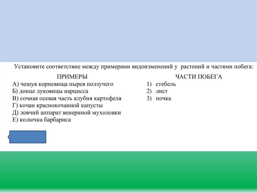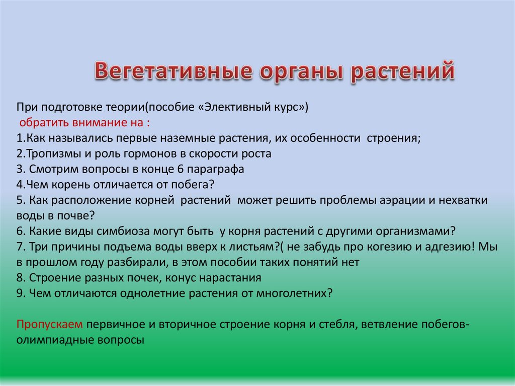 Пропускаем первичное и вторичное строение корня и стебля, ветвление побеговолимпиадные вопросы