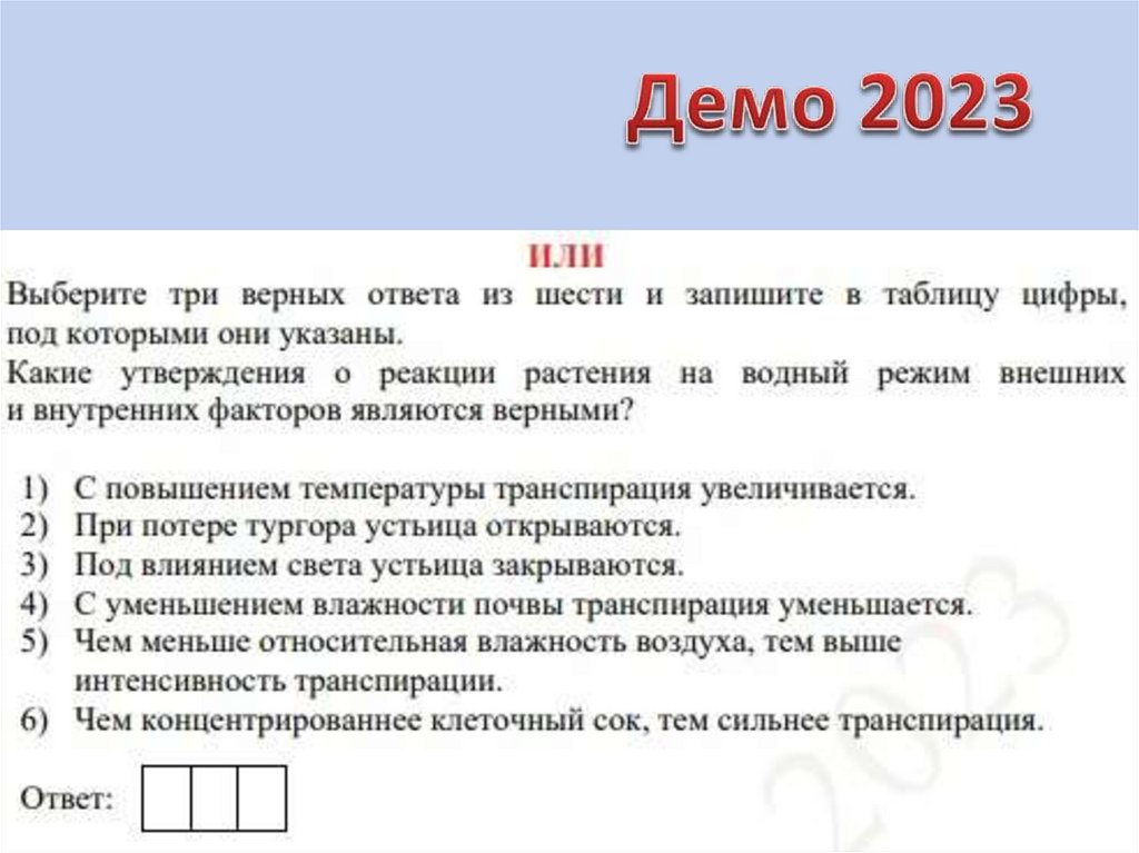 7. Три причины подъема воды вверх к листьям?( не забудь про когезию и адгезию! Мы