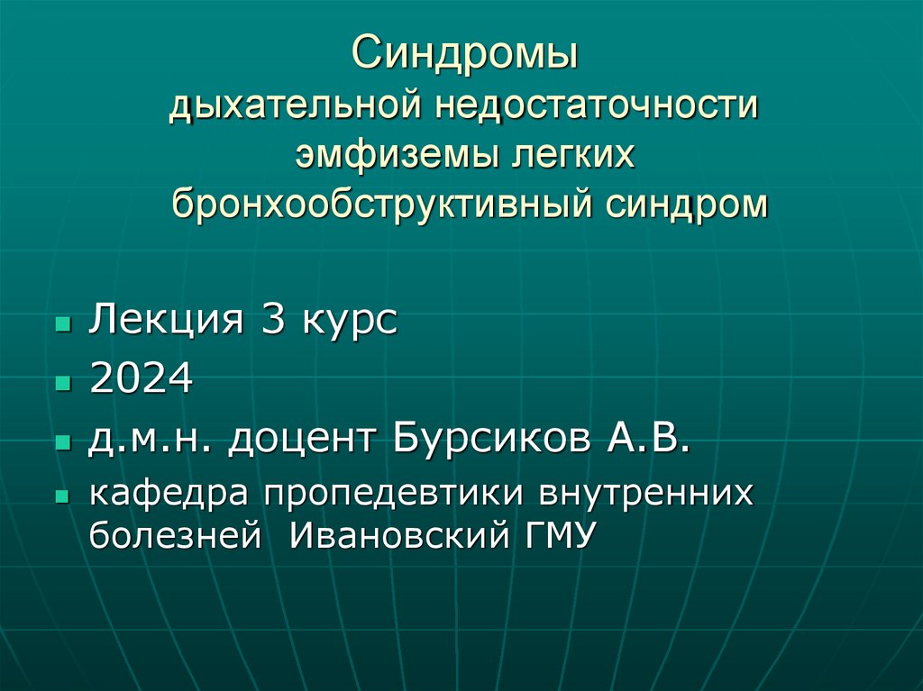 1. Синдромы дыхательной недостаточности эмфиземы легких бронхообструктивный синдром