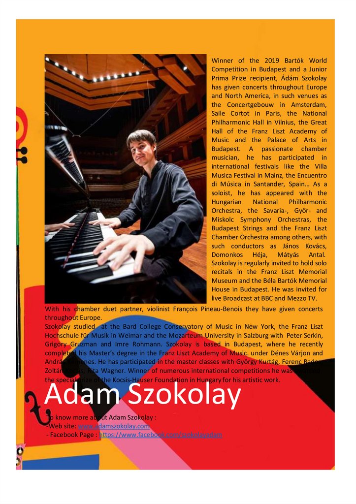 of Budapest and Weimar for the pianist Adam Szokolay.