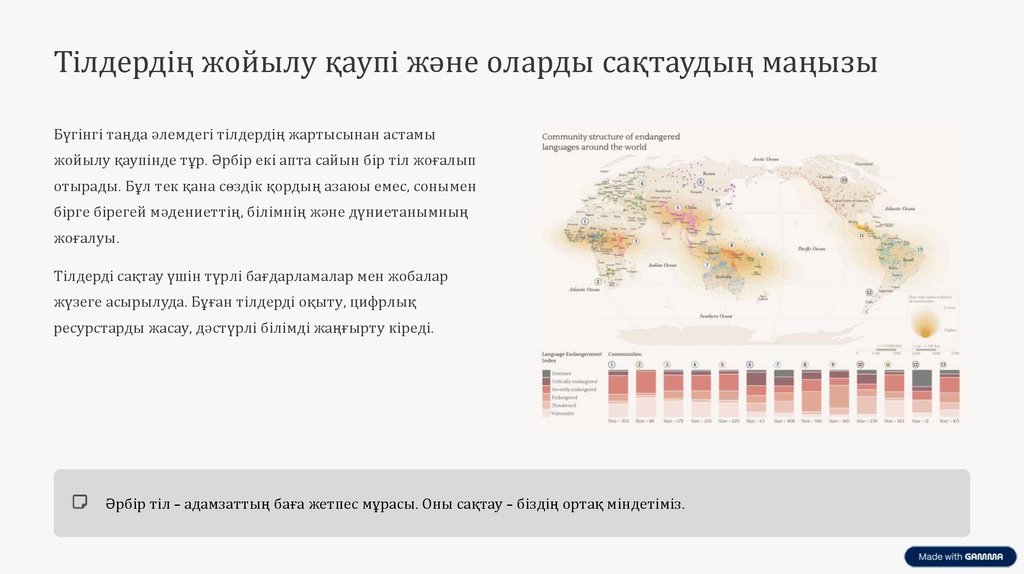Тілдердің жойылу қаупі және оларды сақтаудың маңызыБүгінгі таңда әлемдегі тілдердің жартысынан астамы