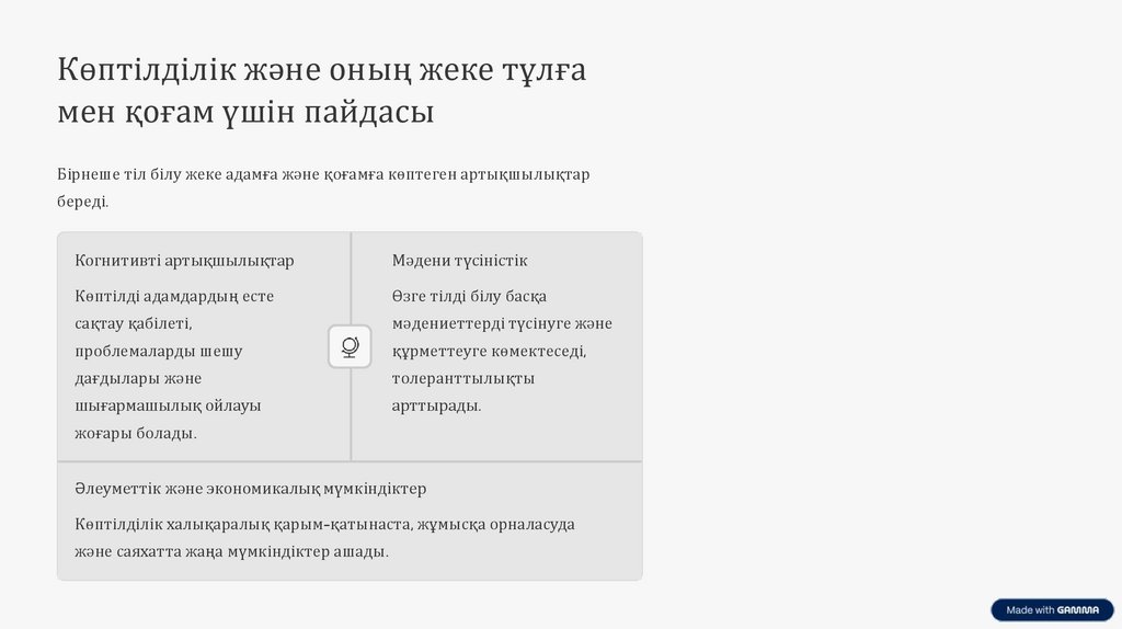 Көптілділік және оның жеке тұлғамен қоғам үшін пайдасы