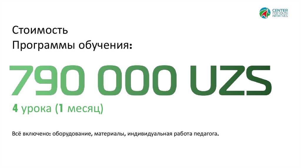 Всё включено: оборудование, материалы, индивидуальная работа педагога.