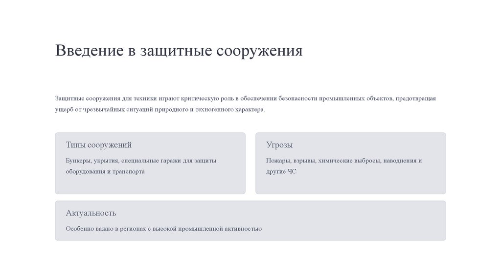 Введение в защитные сооруженияЗащитные сооружения для техники играют критическую роль в обеспечении безопасности промышленных объектов, предотвращая