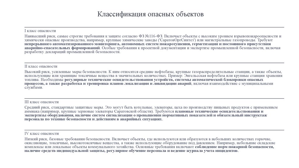 Классификация опасных объектовI класс опасности