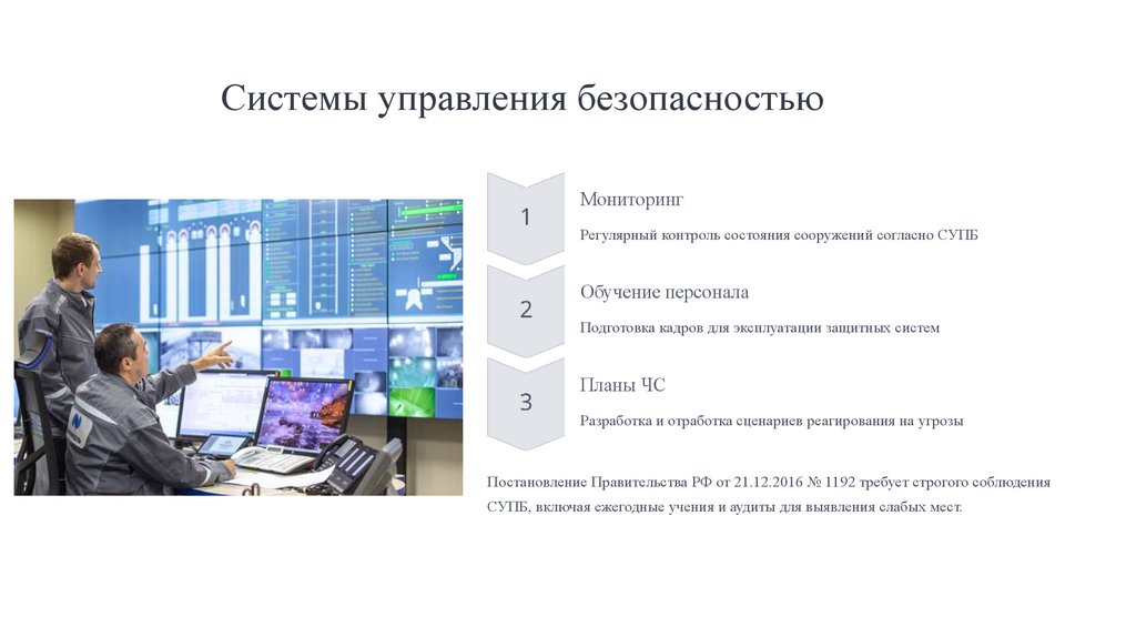 СУПБ, включая ежегодные учения и аудиты для выявления слабых мест.
