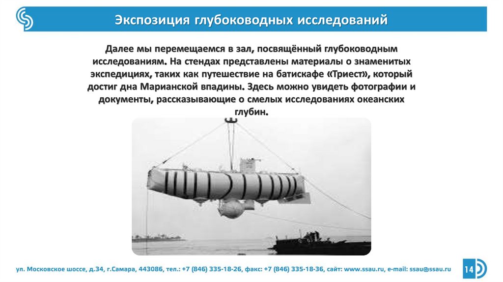 Экспозиция глубоководных исследованийДалее мы перемещаемся в зал, посвящённый глубоководным