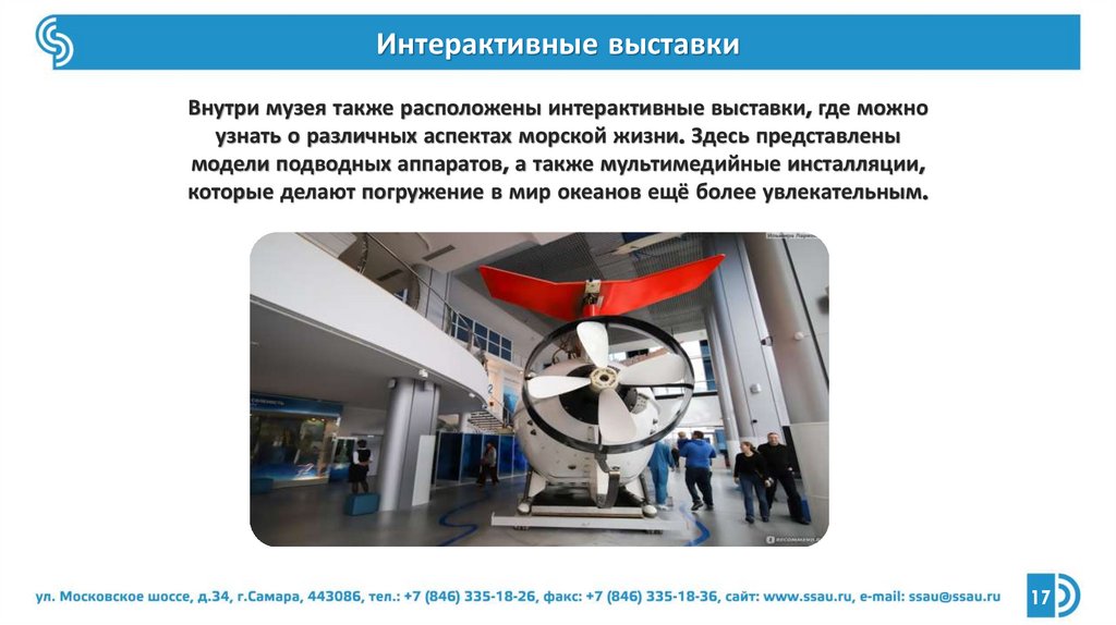модели подводных аппаратов, а также мультимедийные инсталляции,