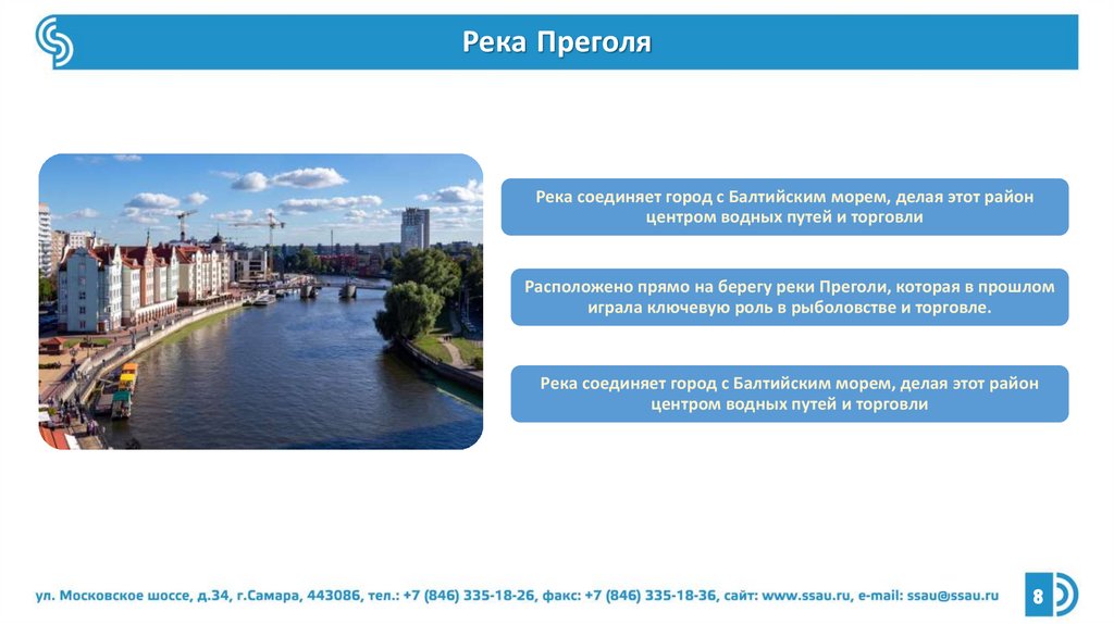 Река ПреголяРека соединяет город с Балтийским морем, делая этот район