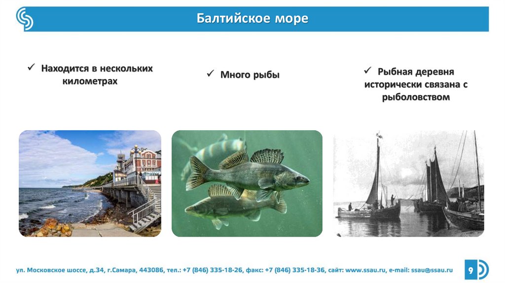 Расположено прямо на берегу реки Преголи, которая в прошлом