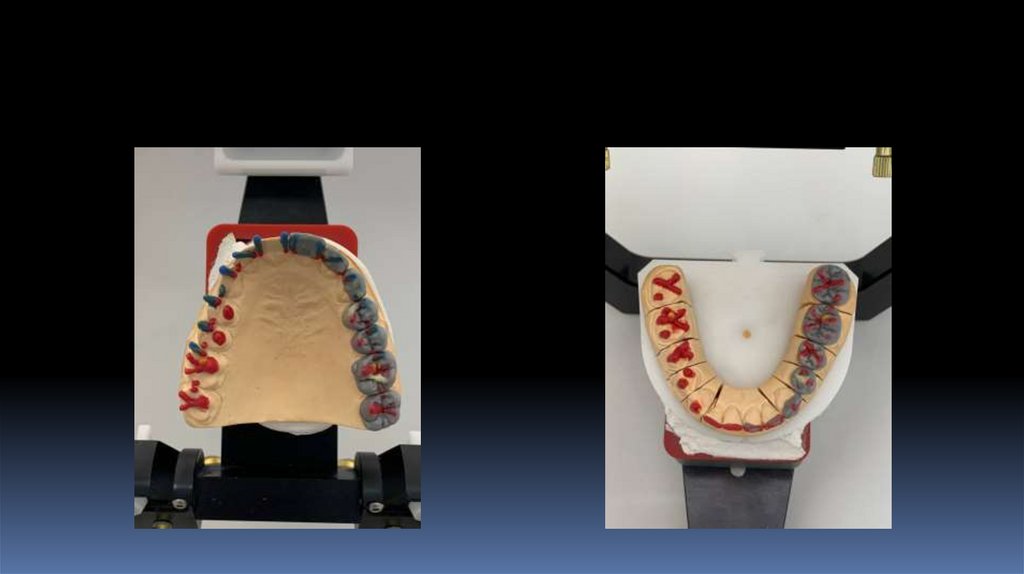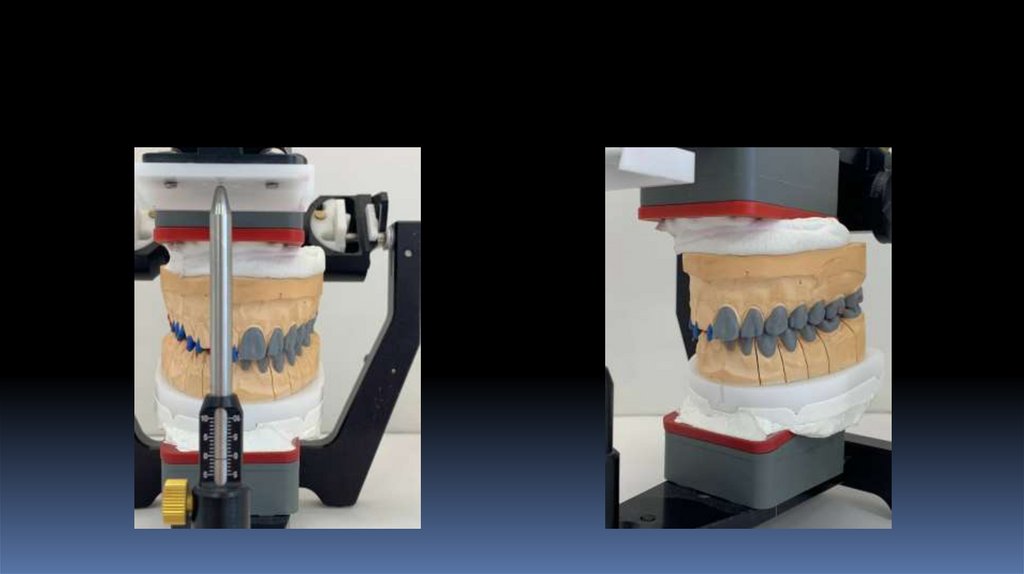 21. Компенсация толщины прикусного регистрата + 10 мм на штифте