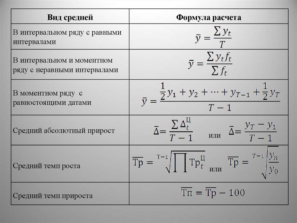 Виды рядов динамики
