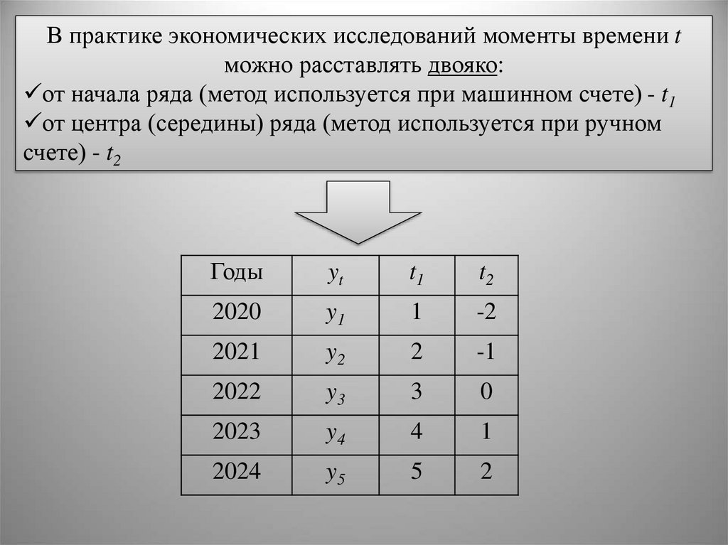 В практике экономических исследований моменты времени tможно расставлять двояко:
