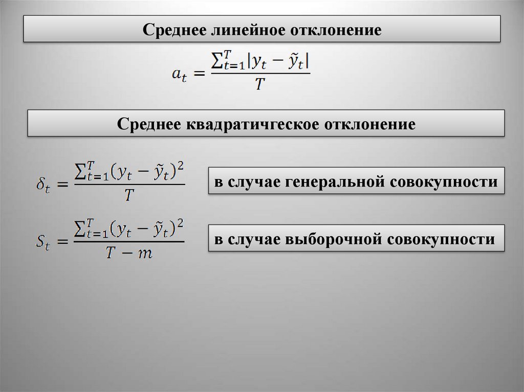Среднее линейное отклонениеСреднее квадратичгеское отклонение