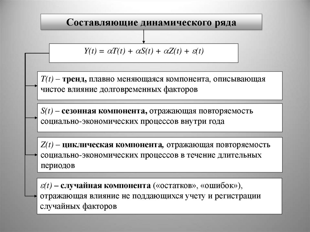 Составляющие динамического рядаY(t) = T(t) + S(t) + Z(t) + (t)