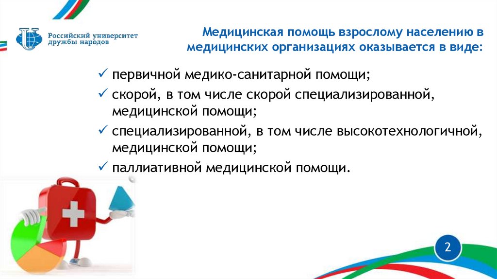 Медицинская помощь взрослому населению вмедицинских организациях оказывается в виде: