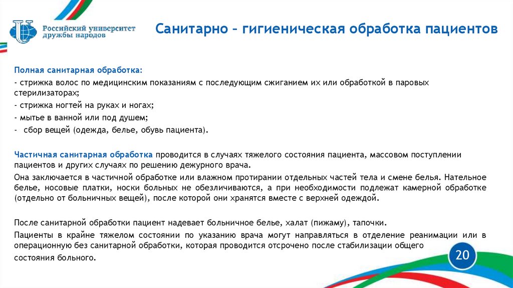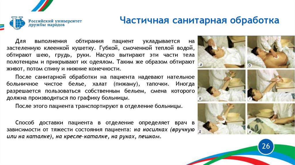 (обтирания) тела, рук и ног, интимной гигиены пациентов