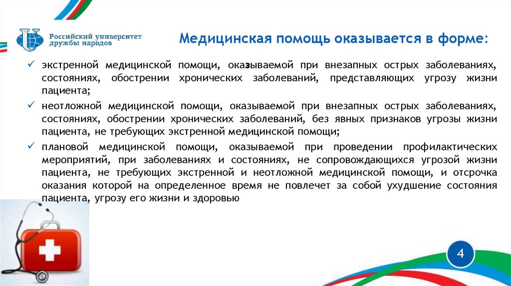 Медицинская помощь оказывается в форме:экстренной медицинской помощи, оказываемой при внезапных острых заболеваниях,