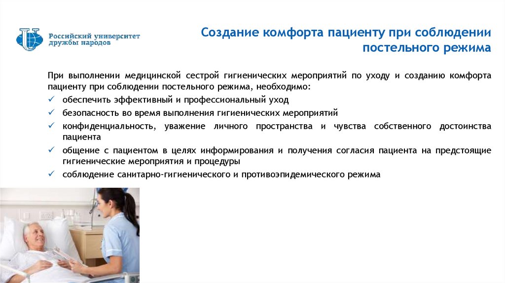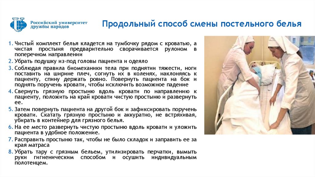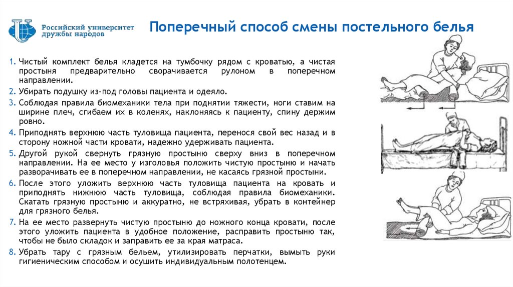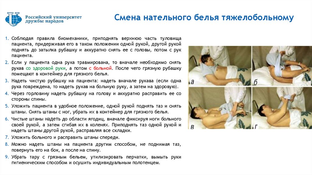 мочеприемник или приподнять таз одной рукой, соблюдая правила биомеханики, и поместить судно