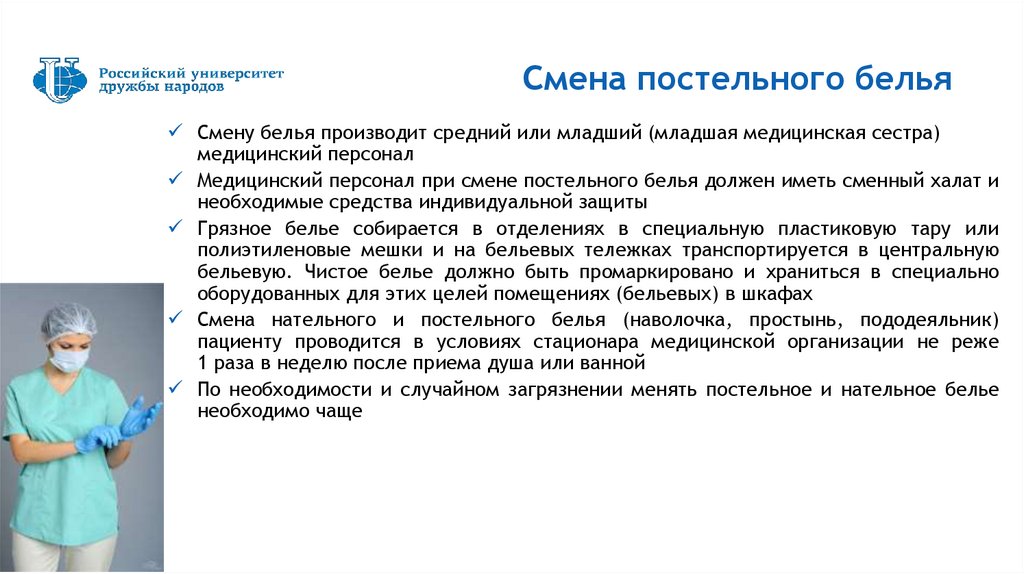 9. Убрать тару с грязным бельем, утилизировать перчатки, вымыть руки