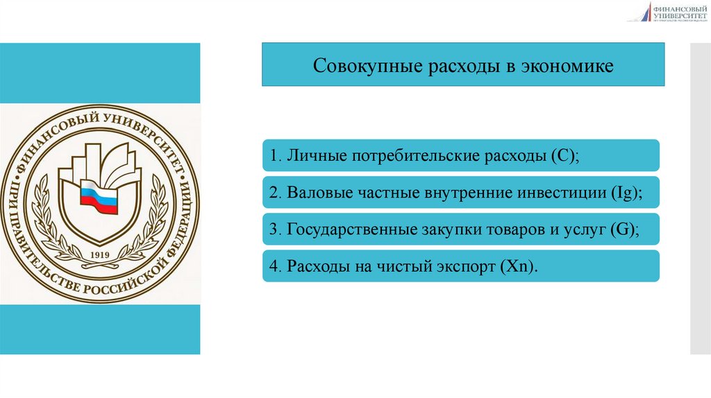 Совокупные расходы в экономике1. Личные потребительские расходы (С);