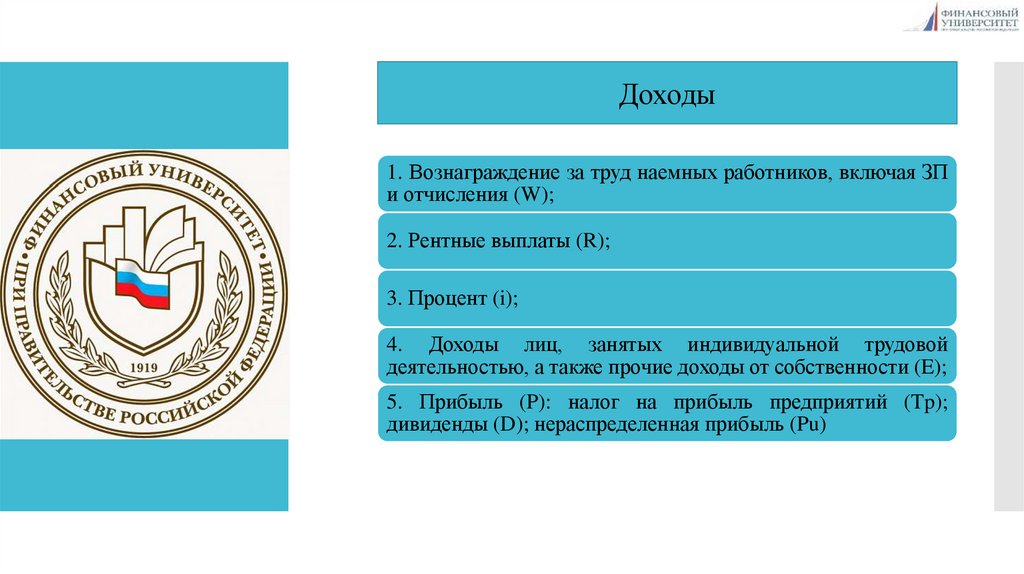 5. Прибыль (P): налог на прибыль предприятий (Tp);