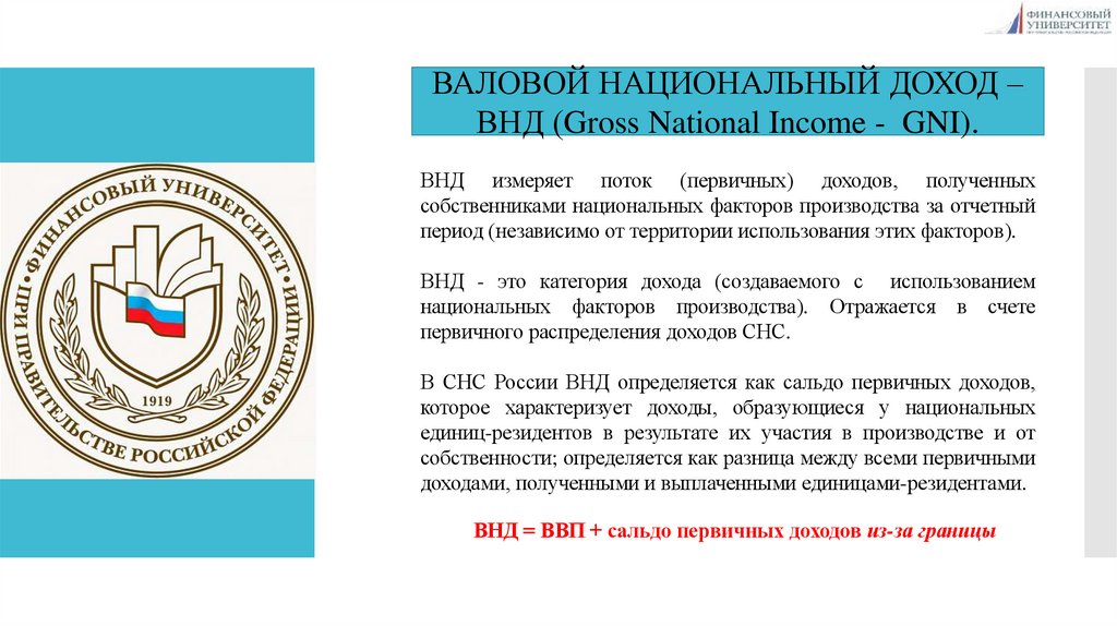 ВАЛОВОЙ НАЦИОНАЛЬНЫЙ ДОХОД –ВНД (Gross National Income - GNI).