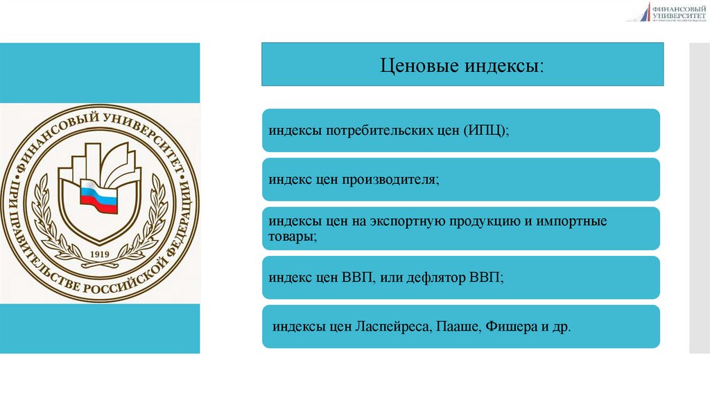 Ценовые индексы:индексы потребительских цен (ИПЦ);