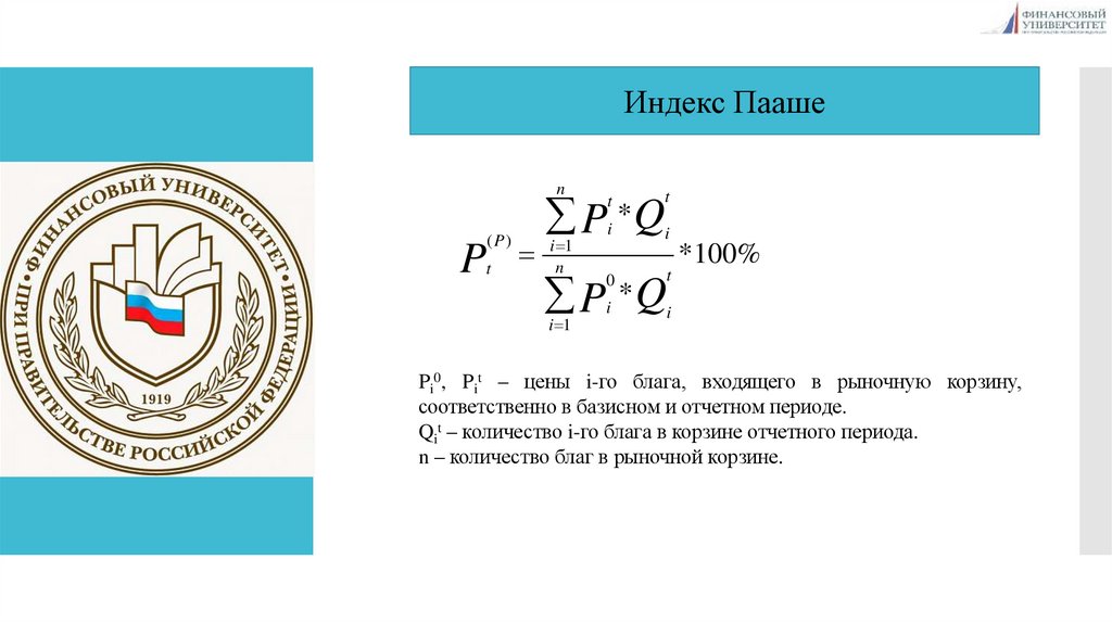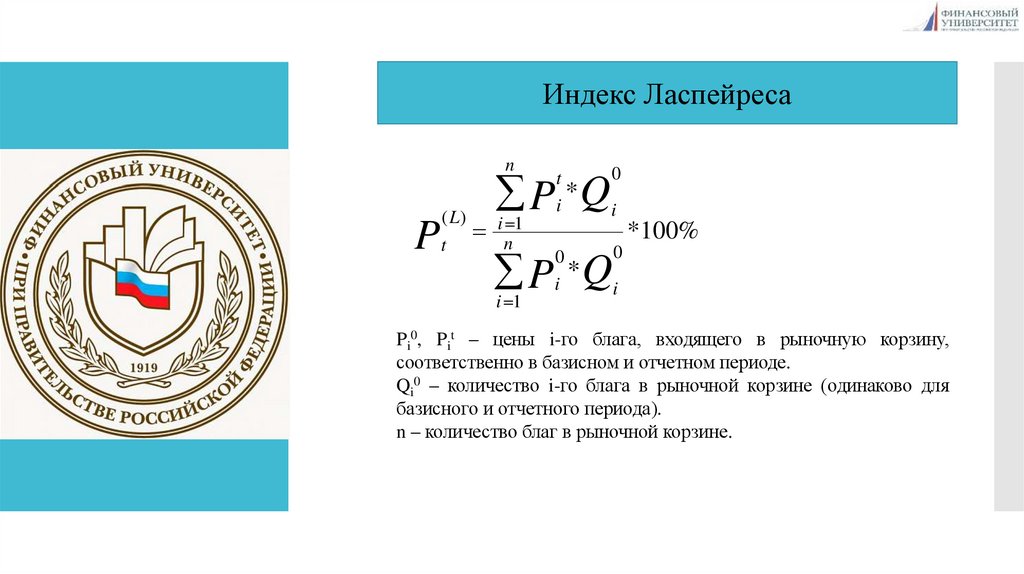 Pi0, Pit – цены i-го блага, входящего в рыночную корзину,