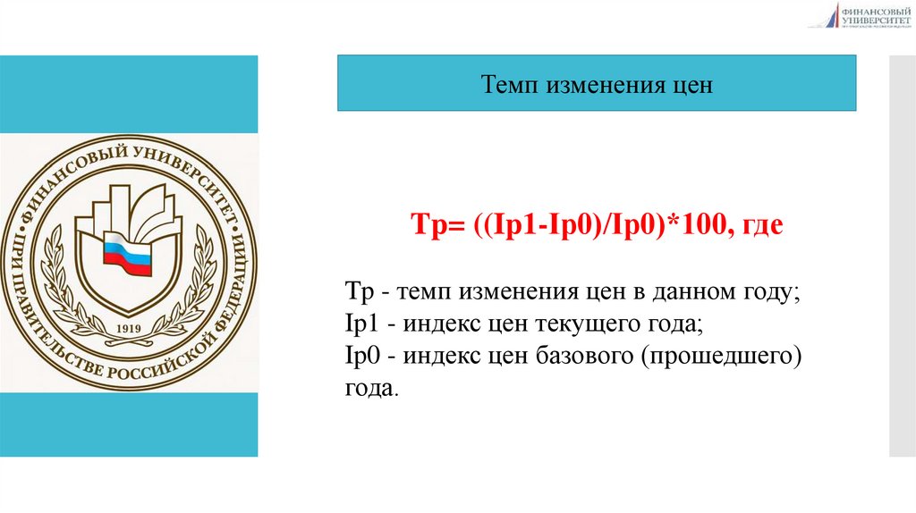 Темп изменения ценTp= ((Ip1-Ip0)/Ip0)*100, где