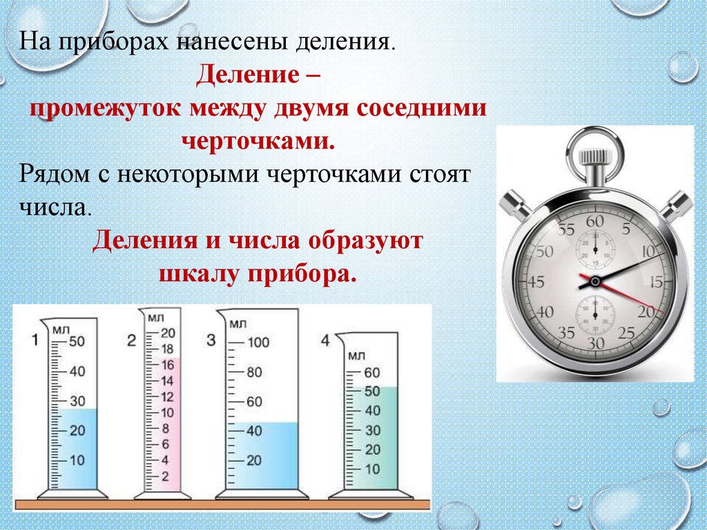 На приборах нанесены деления.Деление –