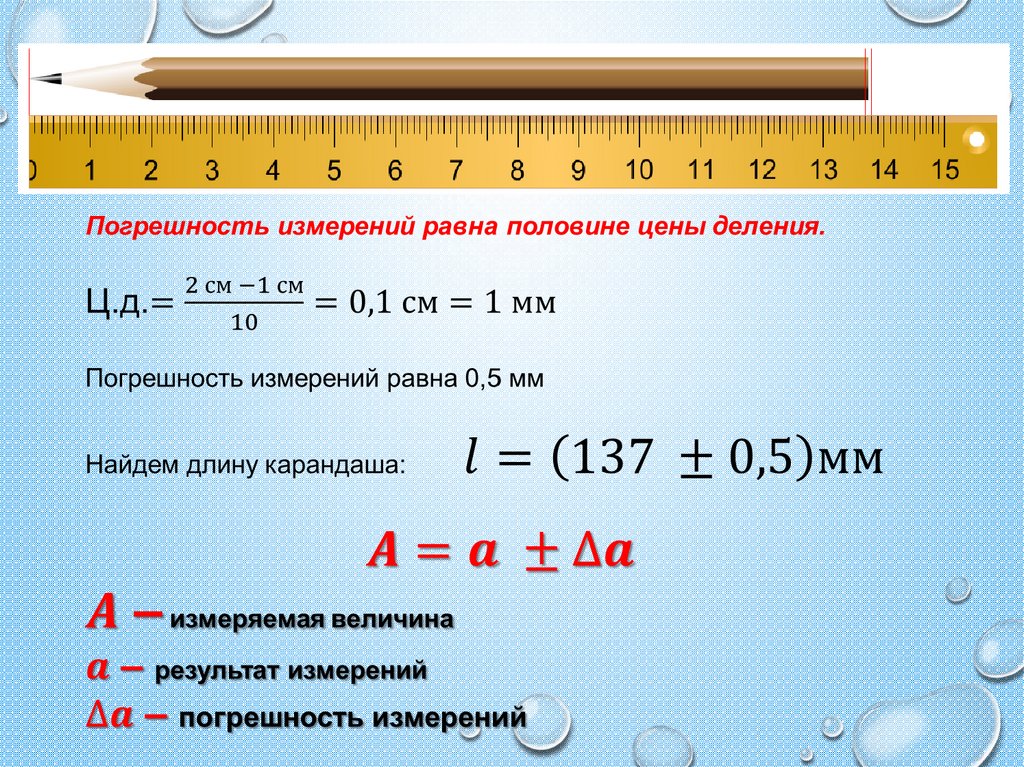 Какова длина карандаша + погрешностьизмерений