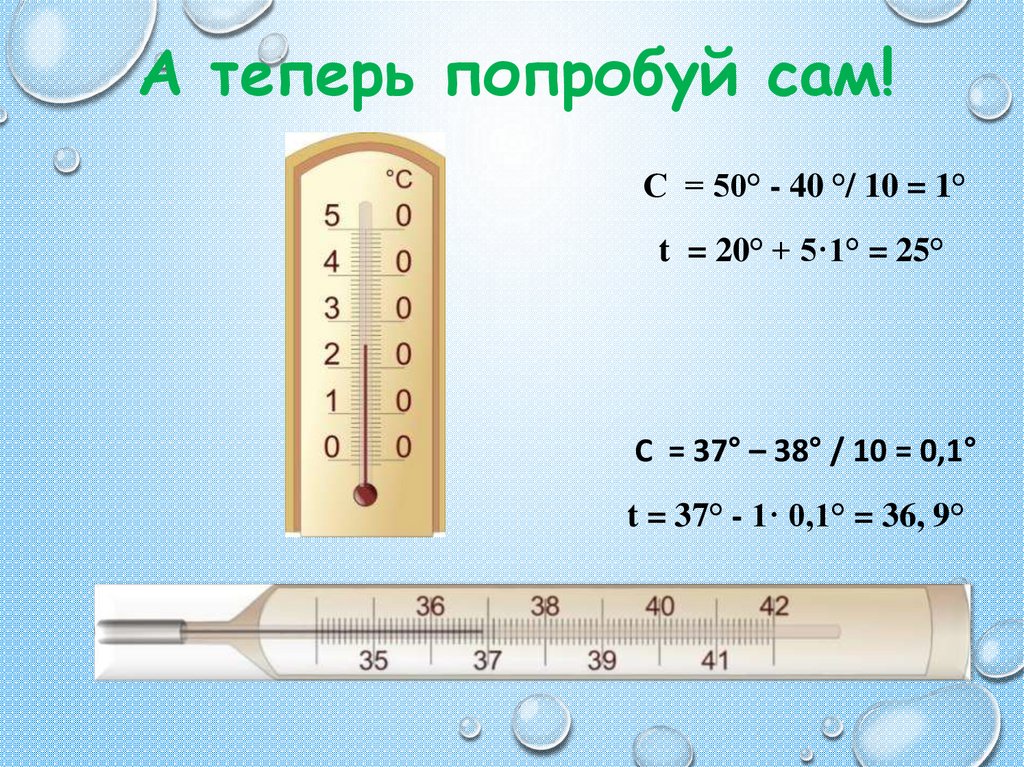 А теперь попробуй сам!С = 50° - 40 °/ 10 = 1°
