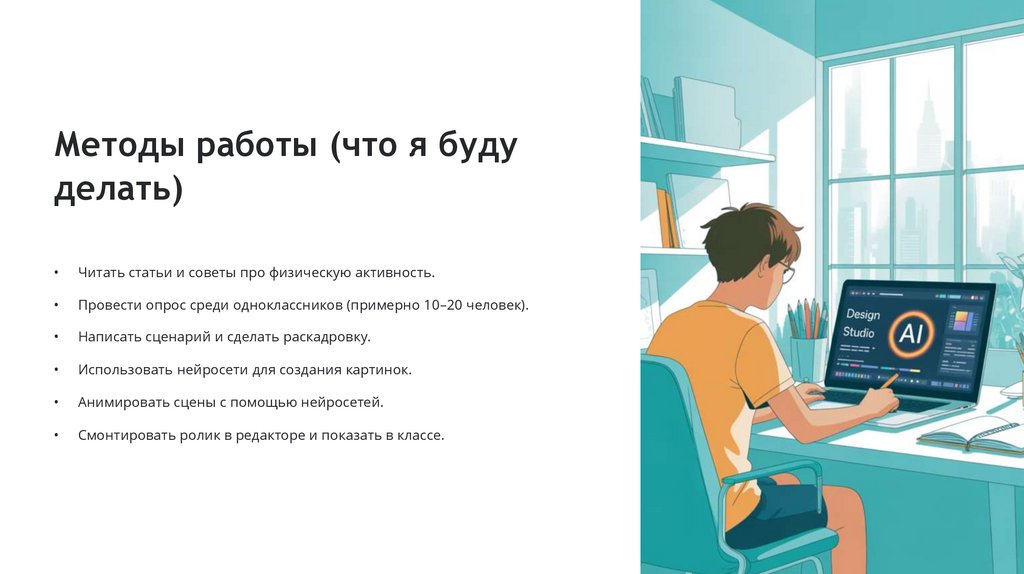 Выполнил все этапы: сценарий, генерация, анимация, монтаж.