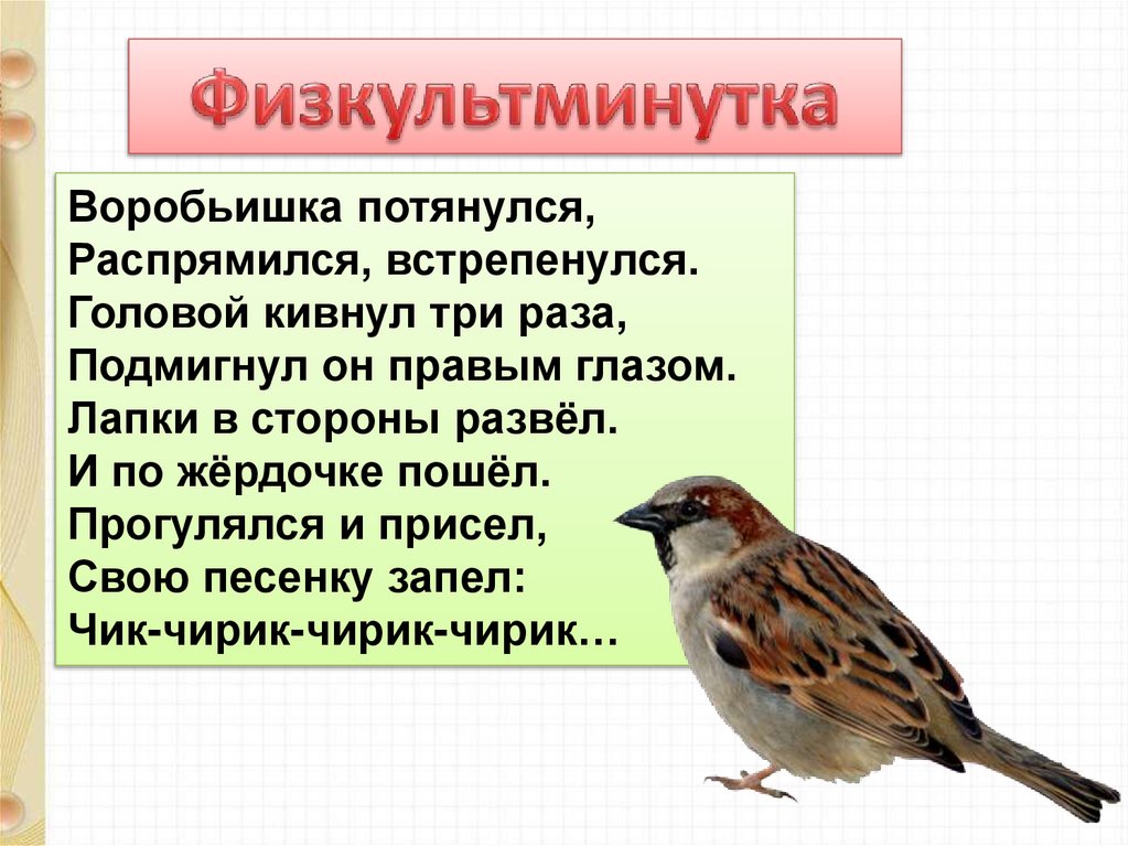 Воробьишка потянулся,Распрямился, встрепенулся.