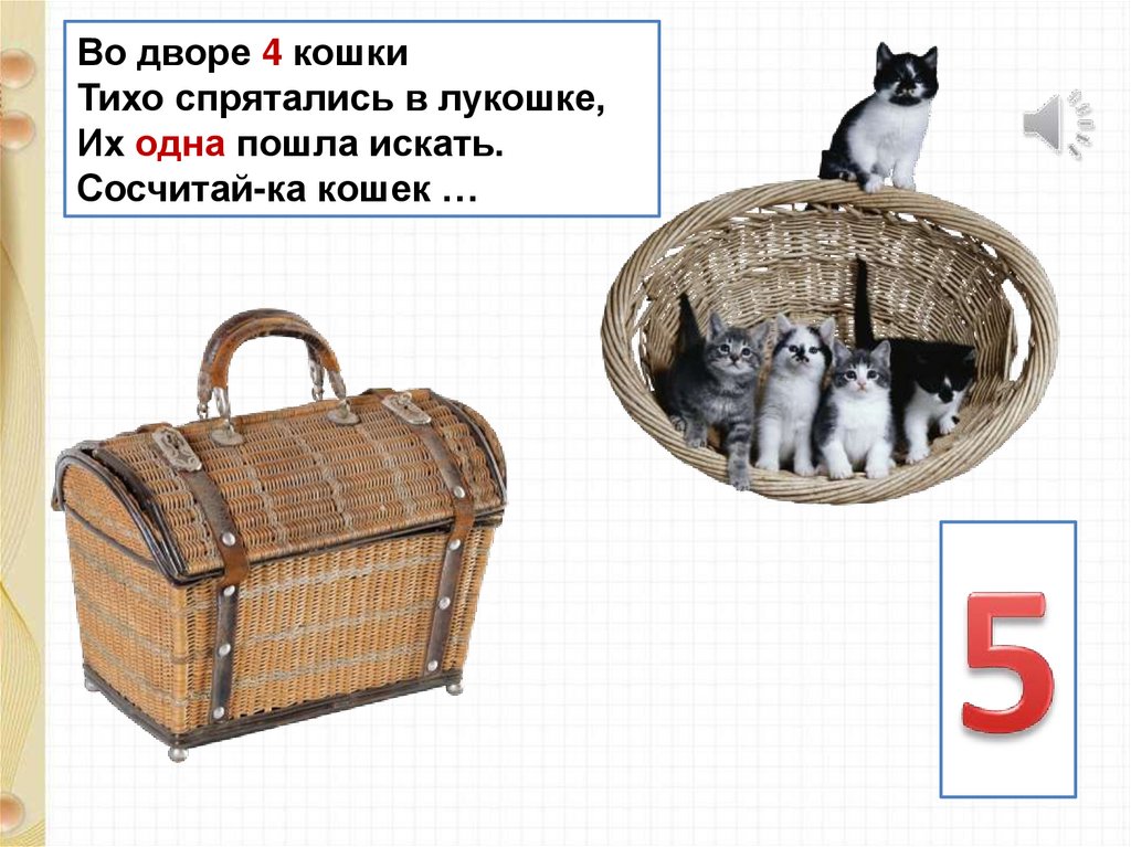 Во дворе 4 кошкиТихо спрятались в лукошке,