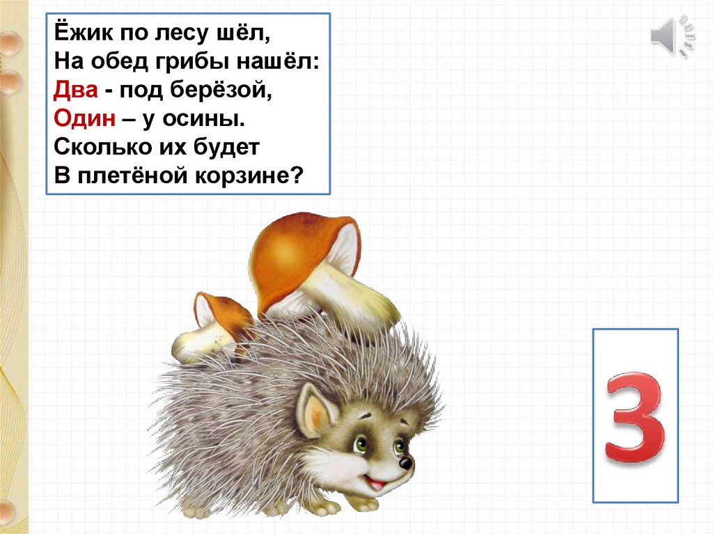 Ёжик по лесу шёл,На обед грибы нашёл: