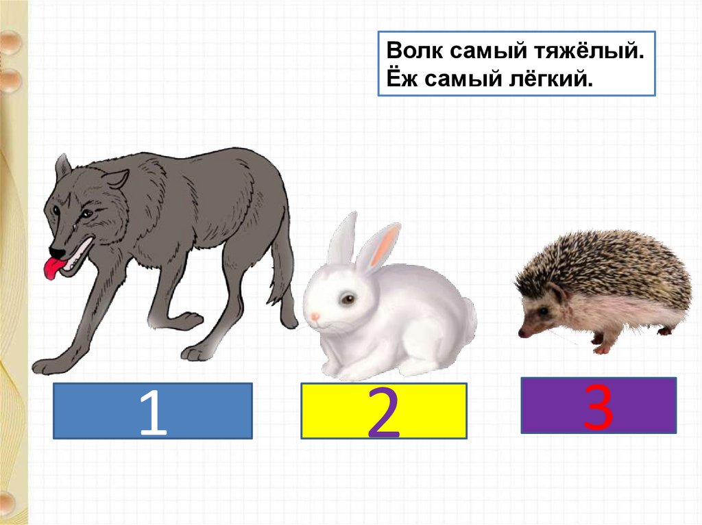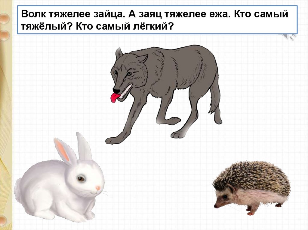 Волк тяжелее зайца. А заяц тяжелее ежа. Кто самыйтяжёлый? Кто самый лёгкий?
