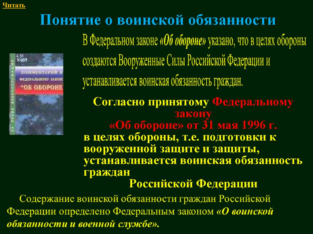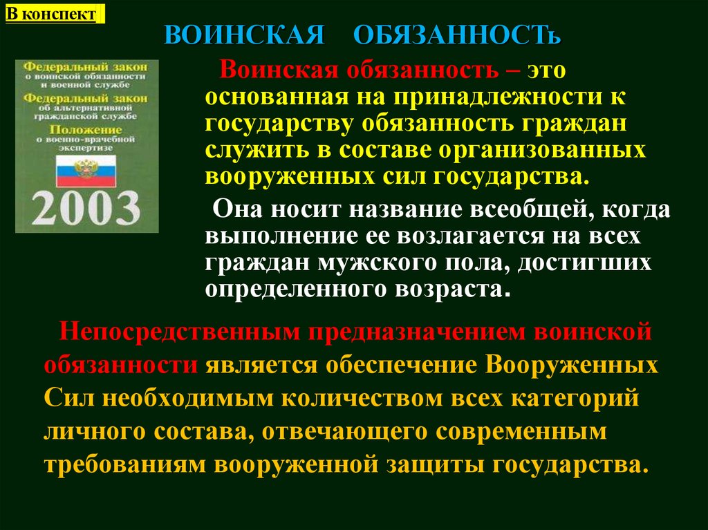 В конспектВОИНСКАЯ ОБЯЗАННОСТЬ